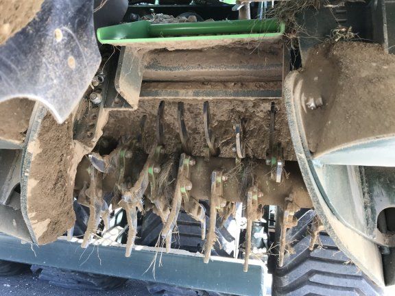 Mulchsaatschare vom Rotor freigehalten. Schmierschichtfreies Pflanzen in den Erdstrom.