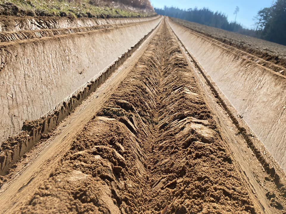 Las patatas se colocan en el suelo con los brotes hacia arriba ....